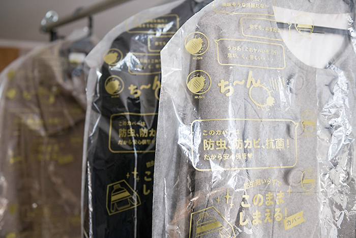 通気性の良いカバーをかけて返却いたしますので、持ち帰ってそのまま収納・保管でき、とってもラクチン。別のカバーに付け替える必要はありません!効果は長持ち約6ヶ月で、市販の防虫剤も併用できます。